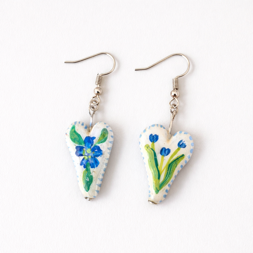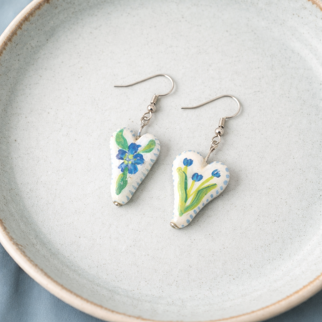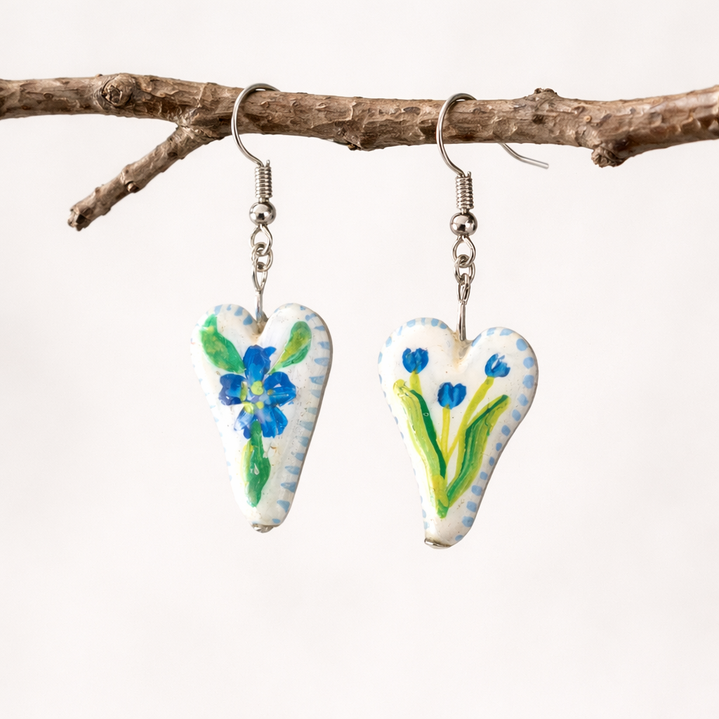• Material: Hand-sculpted clay charms, beads, and sequins with oxidized hooks and connecting rings